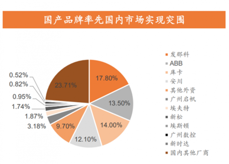 虽然目前我国乃至全球超过50%的工业机器人市场被“四大家族”所占有,但是国内品牌近年来奋起直追,涌现出如埃斯顿、