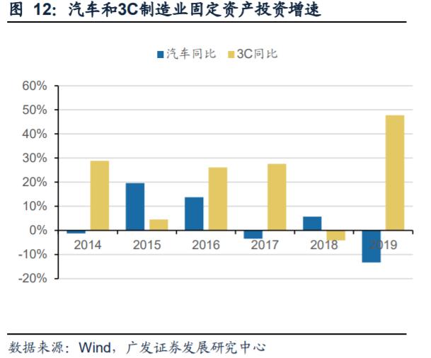 先行指标表现:汽车行业利润总额在14年进入18%以上的增速区间,同期3C行业增速在20%以上,分别带动汽车、3C行业固定资产投资增速于14年12月、15年3月开始反弹。