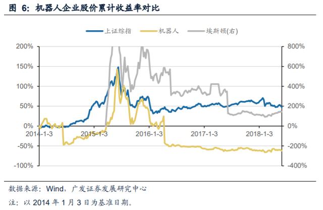 在15-17年的需求周期中,以机器人、新时达为代表的机器人龙头,在牛市前期表现要弱于市场,而在牛市中后期的股价表现较强。那么从二级市场表现来看,为什么工业机器人企业在上一轮牛市的前后差异较大?