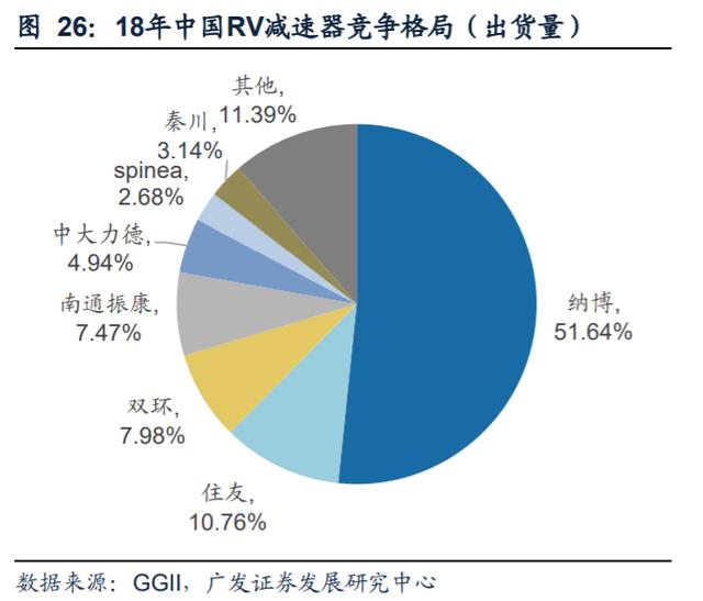 减速机:谐波减速机方面,根据GGII数据,16-18年间,哈默纳科国内出货量市占率下降为50.6%,降幅超10个pct。而绿的、新宝、来福三家国内企业在中国的出货量市占率则从24.1%上升为36%。RV减速器领域,南通镇康、双环传动、中大力德等国产品牌开始逐渐实现份额突破。
